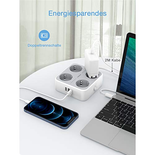 7 in 1 ontwerp: Maximale stroom: 10A, nominaal vermogen: 2500W. Deze stekkerdoos met USB heeft 4 AC aansluitingen en 3 USB aansluitingen. Nu kunt u uw 7 apparaten tegelijkertijd opladen, b.v. B. uw telefoon, laptop, enz., die geschikt is voor thuis en kantoorgebruik.