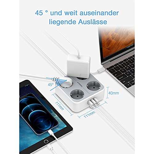 Modieus design: met zijn compacte formaat (11,1 x 11,1 x 4 CM) neemt deze stekkerdoos met USB niet te veel ruimte in beslag. Je kunt deze stekkerdoos in de hoek of op tafel plaatsen. Je hebt meer stopcontacten en ruimte om meer elektronische apparaten op te laden. Zeg vaarwel tegen de rommelige kabels.