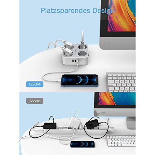 Specification: TESSAN Stekkerdoos, Meervoudige Stekkeradapter met 4 Stopcontacten en 3 USB, 7 in 1 Tafelstopcontact, Stekker met…