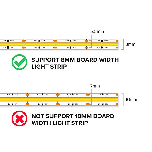 Deze LED connectoren kit is geschikt voor 8mm FCOB FOB LED lichtstrips (niet van toepassing op 10mm board breedte). Selecteer de juiste bordbreedteconnector voor uw COB-strip. MAX Huidige 5A