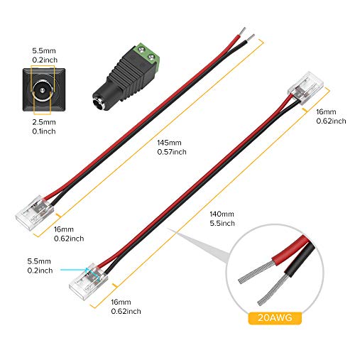 Specification: BTF-LIGHTING FCOB COB FOB 8 MM Connector Kit voor 2 stks 2PIN Brede Dual Single End met 15 cm Lange 20AWG Extension Wire…