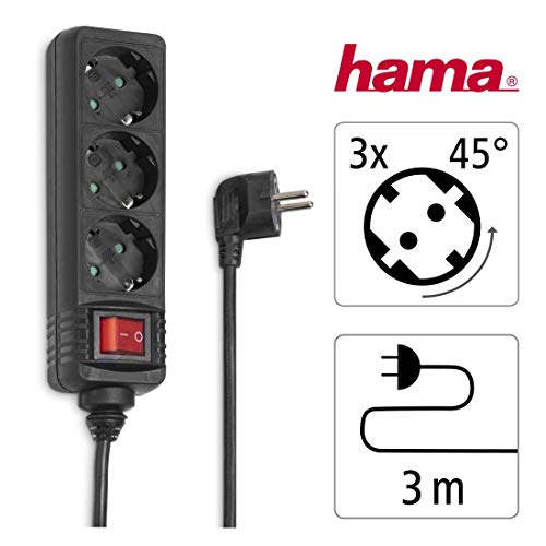 Hama Stekkerdoos, 3-voudig, met schakelaar, kinderbeveiliging, kabellengte 3 m, zwart