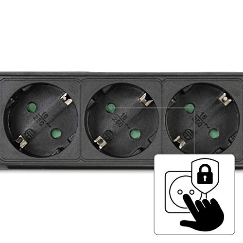 Met geïntegreerde kinderbeveiliging: kunststof plaatjes sluiten de contacten van het stopcontact af, GS-gecertificeerd