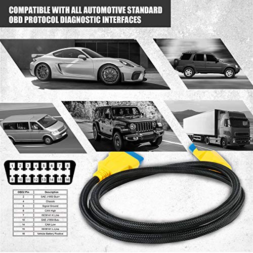 MEER HANDIG: 16-pins stekker kan perfect compatibel zijn met alle obd2-voertuigen op de markt en soepel koppelen met obdii-diagnostische hardware. Ook kunt u uw codelezer en scanner overal bedienen.