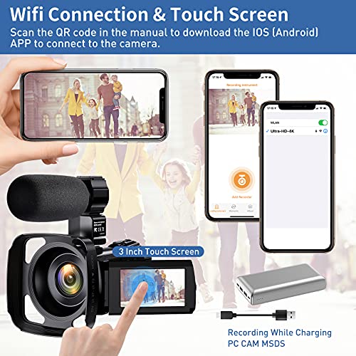Specification: 4K Video Camera Camcorder Ultra HD 48MP WiFi IR Nachtzicht Vlogging Camera voor 3 “IPS Touchscreen 16X Digitale Zoom YouTube Camera Recorder met Microfoon, Handheld Stabilizer, Lens Hood