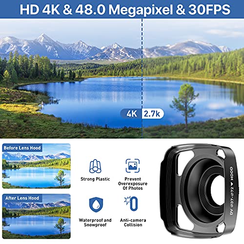 ★ 4K Video Camera voor YouTube: Hoge kwaliteit beeldresolutie tot 48MP,13 Megapixels CMOS-beeldsensor, 4K 2880×2160 (24FPS) videoresolutie, 16X digitale zoom videocamera ondersteunt 270 graden rotatie met 3 inch IPS touchscreen.IR-CUT lichtfilter, Webcam en WiFi draadloze transmissie functie.Perfect voor je YouTube vlogging.. Om u te helpen een goede youtuber.Voor werkelijke 4K visueel effect, speel foto of video af op uw computer of tv.