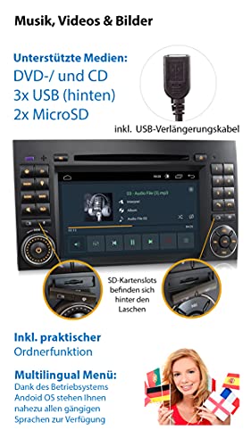 Bluetooth-handsfree-functie en draadloze muziekweergave vanaf uw Bluetooth-apparaat + DVD/CD-station, 3x USB-poort (tot 2 TB!) & 2x Micro SD-kaartslot (tot 256 GB!) + Interne opslagcapaciteit: 32 GB