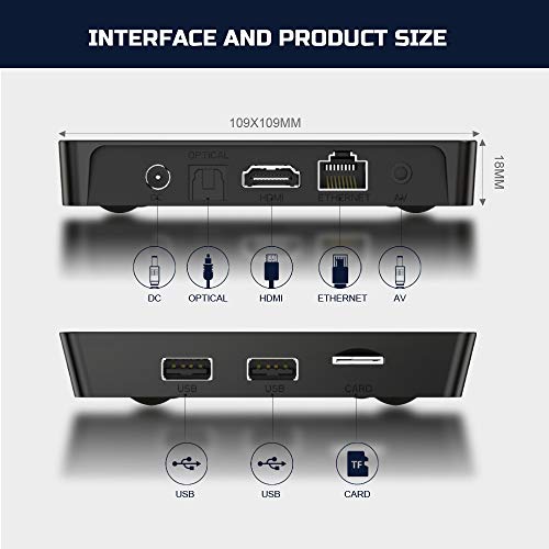 【Ondersteuning voor 3D 6K H.265 en USB3.0】 De nieuwste Android TV Box ondersteunt het decoderen en afspelen van bijna alle populaire audio- en videoformaten, biedt levensechte beeldkwaliteit en 6K @ 60fps ultieme HD-video. Bovendien ondersteunt deze tv-box 3D, u kunt genieten van het visuele feest. Bovendien heeft USB 3.0 het voordeel van snelle overdracht. Het kan voldoen aan de eis van snelle overdracht.