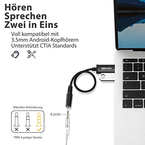 DuKabel USB 3,5 mm TRRS Aux audio-adapters met 1,8 cm breedte bezet geen extra ruimte voor notebook/Mac enz. (apparaat met 2 of meer USB-poorten). Met zijn lichte gewicht kan de externe USB-geluidskaart in een tas naar kantoor, vergaderruimte of thuis worden gedragen.