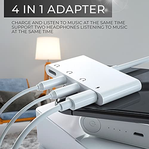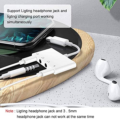 4-in-1 Phone Jack Adapter: Ontworpen met 1 Lightning-aansluiting (alleen opladen), 1 hoofdtelefoonaansluiting (oproepbediening, muziek, volumeregeling) en 2 3,5 mm jackstekkers (alleen muziek), de dubbele aansluiting kan tegelijkertijd worden gebruikt). Interessante informatie: De audio-aansluiting en de 3,5 mm jack kunnen niet tegelijkertijd worden gebruikt