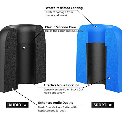 Peakally [8 paar] Memory Foam Oordopjes, Premium Vervanging Oordopjes Memory Foam Oordopjes Geluidsisolatie voor Oortelefoons, 3 kleuren, Maat 4,5 -5,5 mm